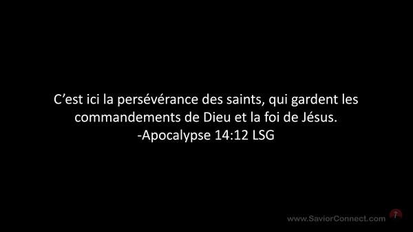 C'est ici la persévérance des saints, qui gardent les commandements de Dieu et la foi de Jésus. -Apocalypse 14:12 LSG