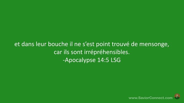 et dans leur bouche il ne s'est point trouvé de mensonge, car ils sont irrépréhensibles. -Apocalypse 14:5 LSG