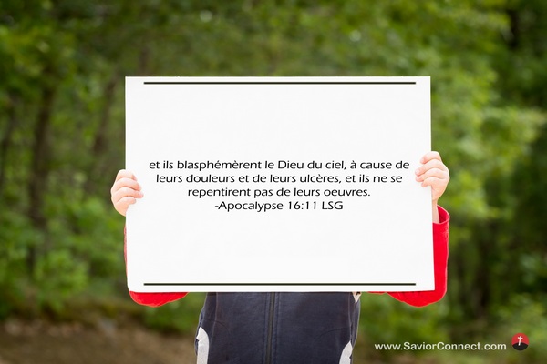 et ils blasphémèrent le Dieu du ciel, à cause de leurs douleurs et de leurs ulcères, et ils ne se repentirent pas de leurs oeuvres. -Apocalypse 16:11 LSG