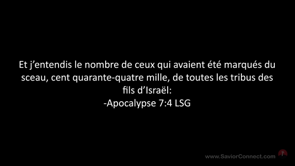 Et j'entendis le nombre de ceux qui avaient été marqués du sceau, cent quarante-quatre mille, de toutes les tribus des fils d'Israël: -Apocalypse 7:4 LSG