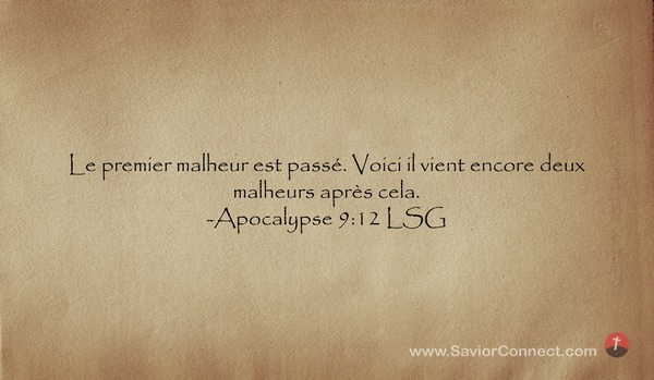 Le premier malheur est passé. Voici il vient encore deux malheurs après cela. -Apocalypse 9:12 LSG