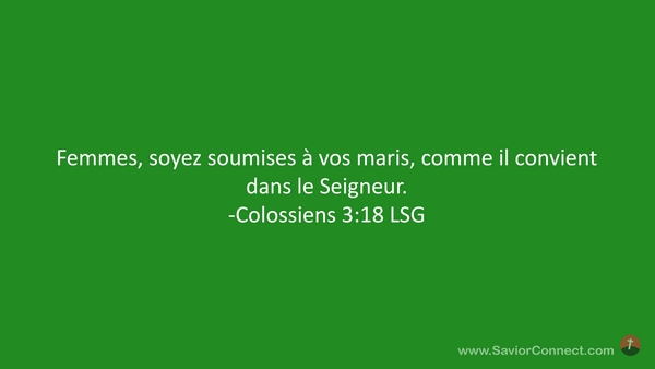Femmes, soyez soumises à vos maris, comme il convient dans le Seigneur. -Colossiens 3:18 LSG