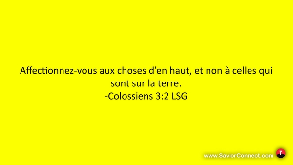 Affectionnez-vous aux choses d'en haut, et non à celles qui sont sur la terre. -Colossiens 3:2 LSG