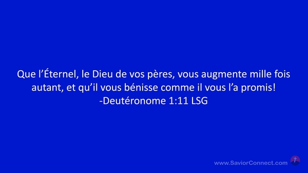 Que l'Éternel, le Dieu de vos pères, vous augmente mille fois autant, et qu'il vous bénisse comme il vous l'a promis! -Deutéronome 1:11 LSG