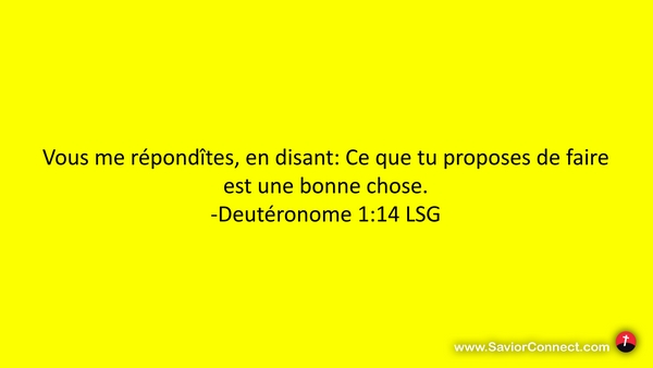 Vous me répondîtes, en disant: Ce que tu proposes de faire est une bonne chose. -Deutéronome 1:14 LSG