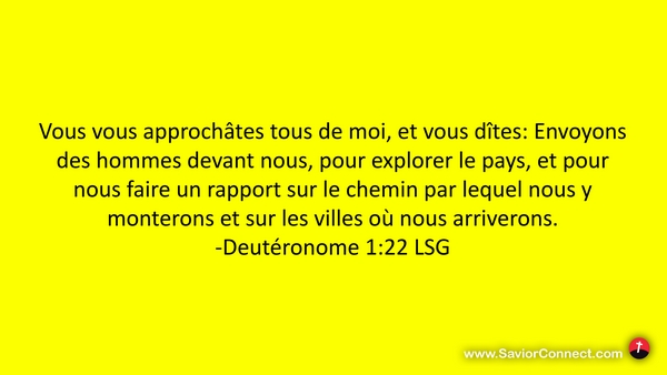 Vous vous approchâtes tous de moi, et vous dîtes: Envoyons des hommes devant nous, pour explorer le pays, et pour nous faire un rapport sur le chemin par lequel nous y monterons et sur les villes où nous arriverons. -Deutéronome 1:22 LSG