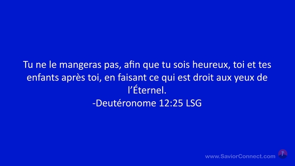 Tu ne le mangeras pas, afin que tu sois heureux, toi et tes enfants après toi, en faisant ce qui est droit aux yeux de l'Éternel. -Deutéronome 12:25 LSG
