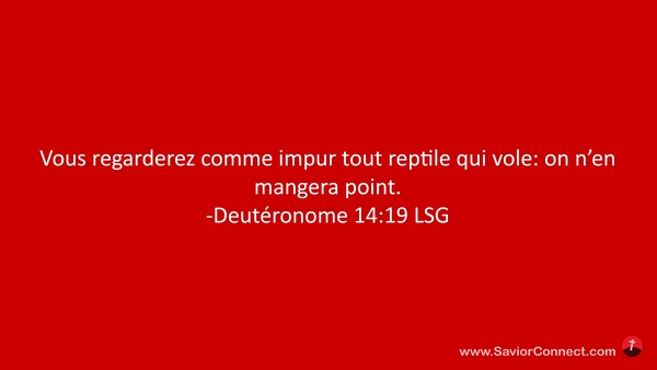 Vous regarderez comme impur tout reptile qui vole: on n'en mangera point. -Deutéronome 14:19 LSG