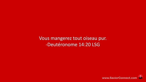 Vous mangerez tout oiseau pur. -Deutéronome 14:20 LSG