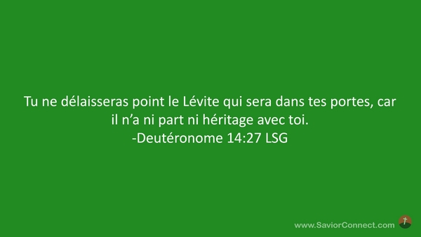 Tu ne délaisseras point le Lévite qui sera dans tes portes, car il n'a ni part ni héritage avec toi. -Deutéronome 14:27 LSG