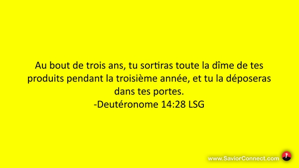 Au bout de trois ans, tu sortiras toute la dîme de tes produits pendant la troisième année, et tu la déposeras dans tes portes. -Deutéronome 14:28 LSG
