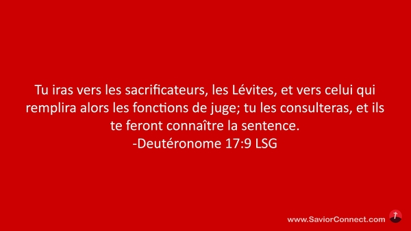 Tu iras vers les sacrificateurs, les Lévites, et vers celui qui remplira alors les fonctions de juge; tu les consulteras, et ils te feront connaître la sentence. -Deutéronome 17:9 LSG