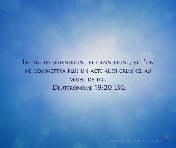 Les autres entendront et craindront, et l'on ne commettra plus un acte aussi criminel au milieu de toi. -Deutéronome 19:20 LSG