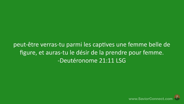 peut-être verras-tu parmi les captives une femme belle de figure, et auras-tu le désir de la prendre pour femme. -Deutéronome 21:11 LSG