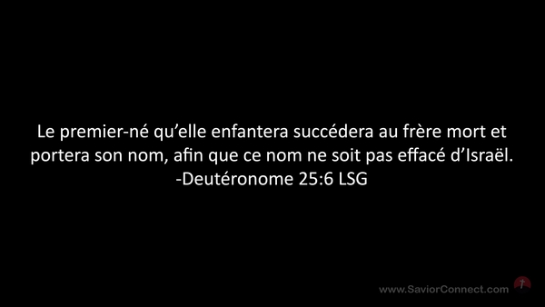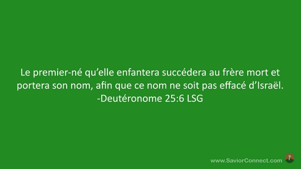Le premier-né qu'elle enfantera succédera au frère mort et portera son nom, afin que ce nom ne soit pas effacé d'Israël. -Deutéronome 25:6 LSG