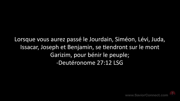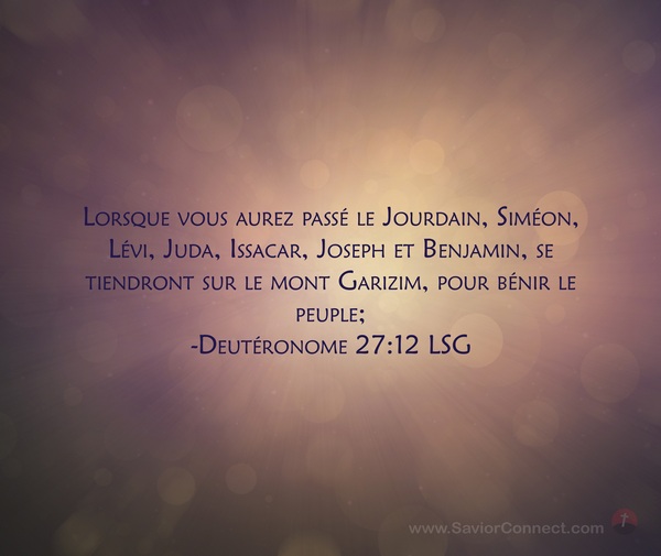 Lorsque vous aurez passé le Jourdain, Siméon, Lévi, Juda, Issacar, Joseph et Benjamin, se tiendront sur le mont Garizim, pour bénir le peuple; -Deutéronome 27:12 LSG