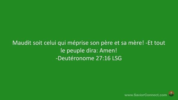 Maudit soit celui qui méprise son père et sa mère! -Et tout le peuple dira: Amen! -Deutéronome 27:16 LSG