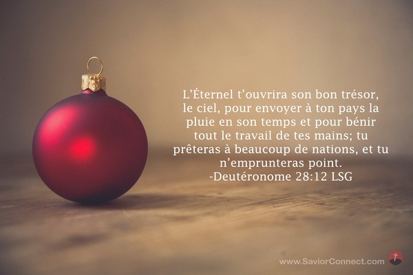 L'Éternel t'ouvrira son bon trésor, le ciel, pour envoyer à ton pays la pluie en son temps et pour bénir tout le travail de tes mains; tu prêteras à beaucoup de nations, et tu n'emprunteras point. -Deutéronome 28:12 LSG