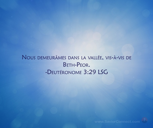 Nous demeurâmes dans la vallée, vis-à-vis de Beth-Peor. -Deutéronome 3:29 LSG