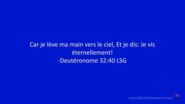 Car je lève ma main vers le ciel, Et je dis: Je vis éternellement! -Deutéronome 32:40 LSG