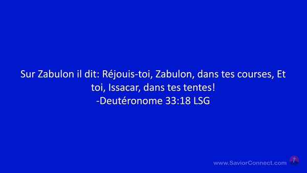Sur Zabulon il dit: Réjouis-toi, Zabulon, dans tes courses, Et toi, Issacar, dans tes tentes! -Deutéronome 33:18 LSG
