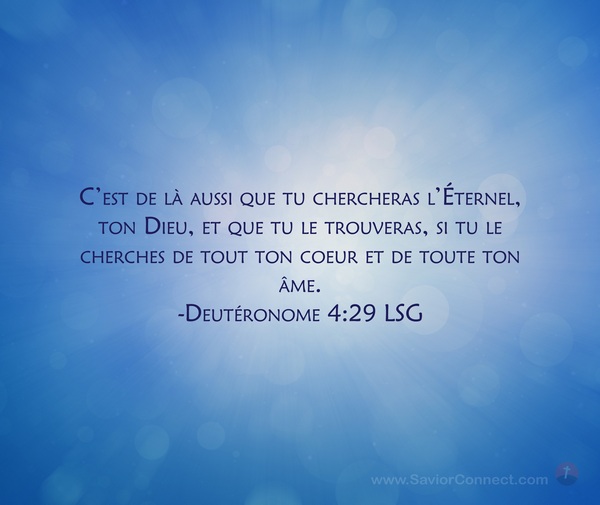 C'est de là aussi que tu chercheras l'Éternel, ton Dieu, et que tu le trouveras, si tu le cherches de tout ton coeur et de toute ton âme. -Deutéronome 4:29 LSG