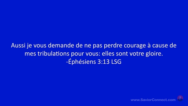 Aussi je vous demande de ne pas perdre courage à cause de mes tribulations pour vous: elles sont votre gloire. -Éphésiens 3:13 LSG