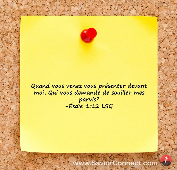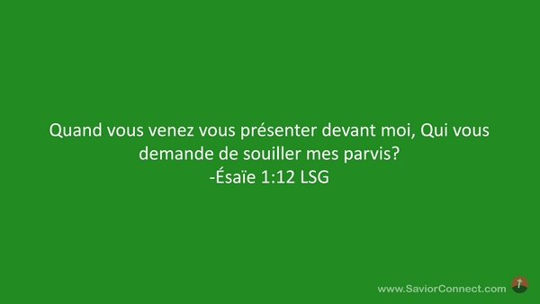 Quand vous venez vous présenter devant moi, Qui vous demande de souiller mes parvis? -Ésaïe 1:12 LSG