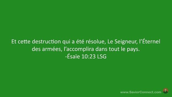 Et cette destruction qui a été résolue, Le Seigneur, l'Éternel des armées, l'accomplira dans tout le pays. -Ésaïe 10:23 LSG