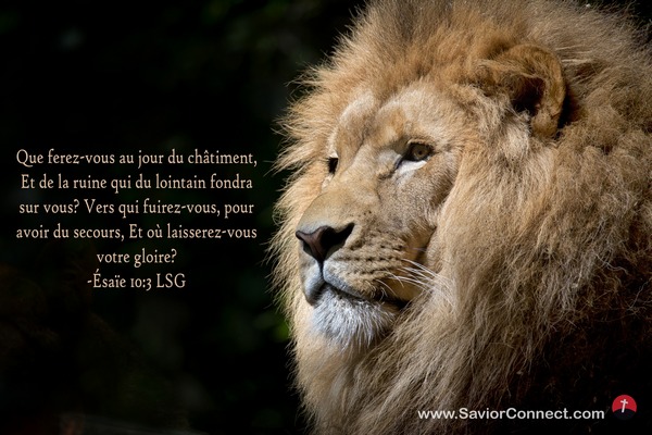 Que ferez-vous au jour du châtiment, Et de la ruine qui du lointain fondra sur vous? Vers qui fuirez-vous, pour avoir du secours, Et où laisserez-vous votre gloire? -Ésaïe 10:3 LSG