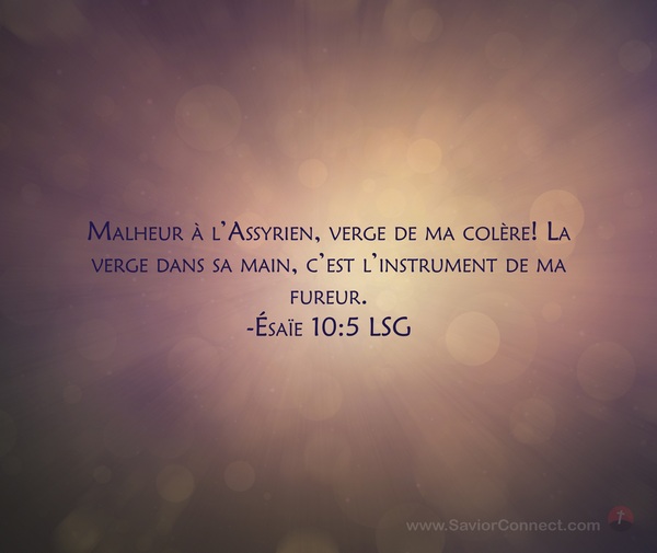 Malheur à l'Assyrien, verge de ma colère! La verge dans sa main, c'est l'instrument de ma fureur. -Ésaïe 10:5 LSG