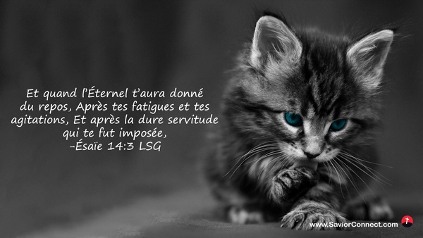 Et quand l'Éternel t'aura donné du repos, Après tes fatigues et tes agitations, Et après la dure servitude qui te fut imposée, -Ésaïe 14:3 LSG