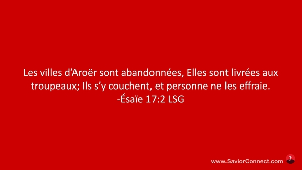 Les villes d'Aroër sont abandonnées, Elles sont livrées aux troupeaux; Ils s'y couchent, et personne ne les effraie. -Ésaïe 17:2 LSG