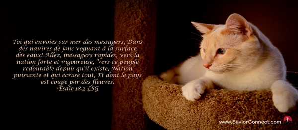 Toi qui envoies sur mer des messagers, Dans des navires de jonc voguant à la surface des eaux! Allez, messagers rapides, vers la nation forte et vigoureuse, Vers ce peuple redoutable depuis qu'il existe, Nation puissante et qui écrase tout, Et dont le pays est coupé par des fleuves. -Ésaïe 18:2 LSG