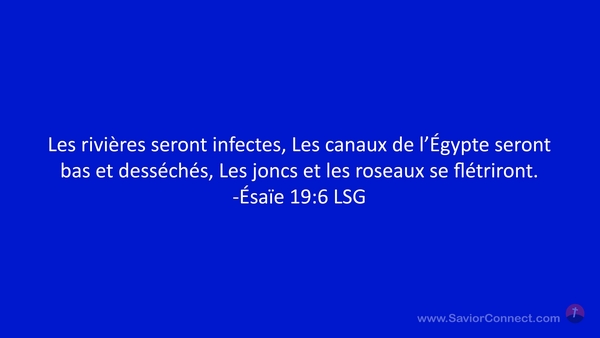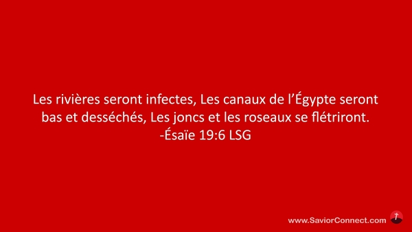 Les rivières seront infectes, Les canaux de l'Égypte seront bas et desséchés, Les joncs et les roseaux se flétriront. -Ésaïe 19:6 LSG