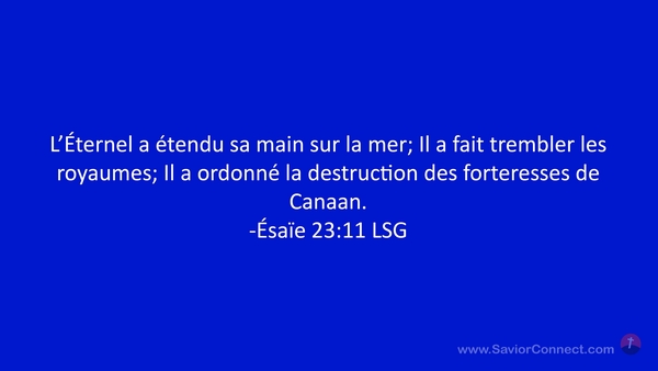 L'Éternel a étendu sa main sur la mer; Il a fait trembler les royaumes; Il a ordonné la destruction des forteresses de Canaan. -Ésaïe 23:11 LSG