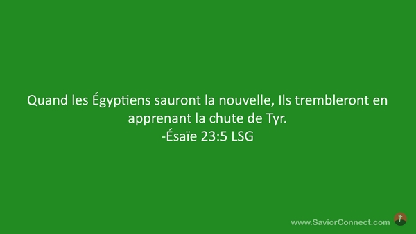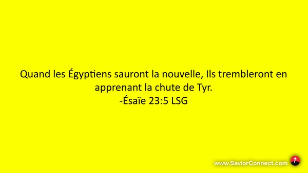 Quand les Égyptiens sauront la nouvelle, Ils trembleront en apprenant la chute de Tyr. -Ésaïe 23:5 LSG