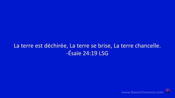 La terre est déchirée, La terre se brise, La terre chancelle. -Ésaïe 24:19 LSG
