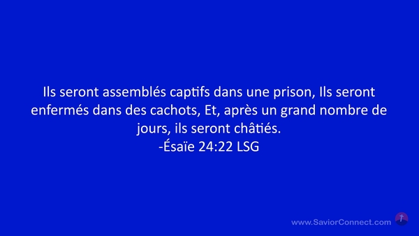 Ils seront assemblés captifs dans une prison, Ils seront enfermés dans des cachots, Et, après un grand nombre de jours, ils seront châtiés. -Ésaïe 24:22 LSG