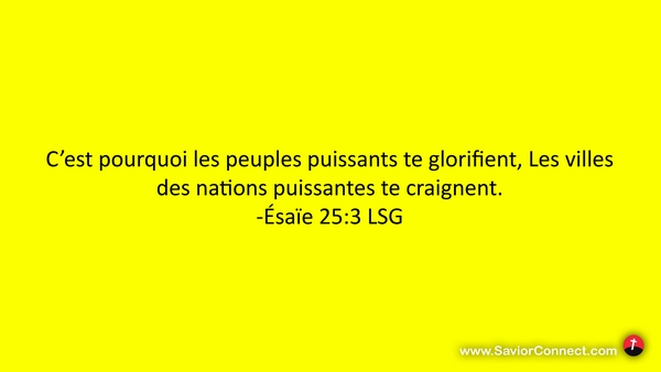 C'est pourquoi les peuples puissants te glorifient, Les villes des nations puissantes te craignent. -Ésaïe 25:3 LSG