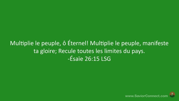 Multiplie le peuple, ô Éternel! Multiplie le peuple, manifeste ta gloire; Recule toutes les limites du pays. -Ésaïe 26:15 LSG