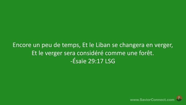 Encore un peu de temps, Et le Liban se changera en verger, Et le verger sera considéré comme une forêt. -Ésaïe 29:17 LSG