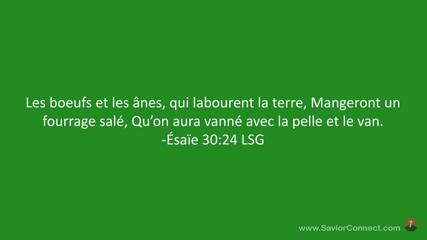 Les boeufs et les ânes, qui labourent la terre, Mangeront un fourrage salé, Qu'on aura vanné avec la pelle et le van. -Ésaïe 30:24 LSG