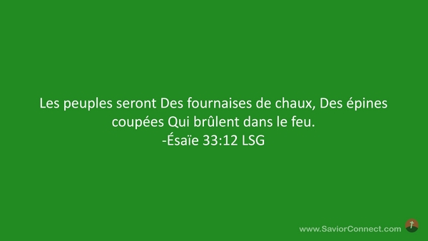 Les peuples seront Des fournaises de chaux, Des épines coupées Qui brûlent dans le feu. -Ésaïe 33:12 LSG