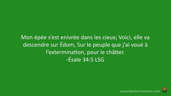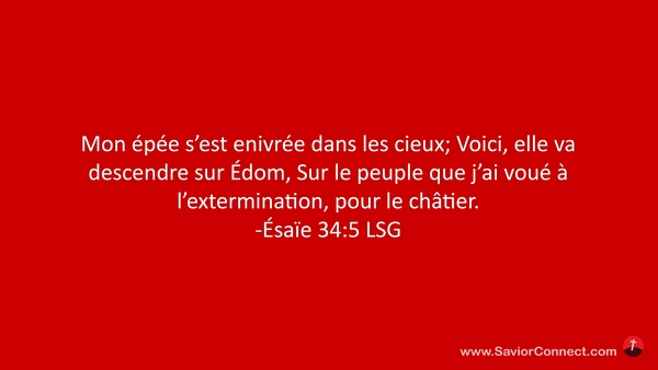Mon épée s'est enivrée dans les cieux; Voici, elle va descendre sur Édom, Sur le peuple que j'ai voué à l'extermination, pour le châtier. -Ésaïe 34:5 LSG