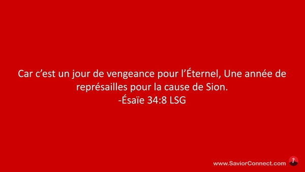 Car c'est un jour de vengeance pour l'Éternel, Une année de représailles pour la cause de Sion. -Ésaïe 34:8 LSG