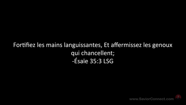 Fortifiez les mains languissantes, Et affermissez les genoux qui chancellent; -Ésaïe 35:3 LSG