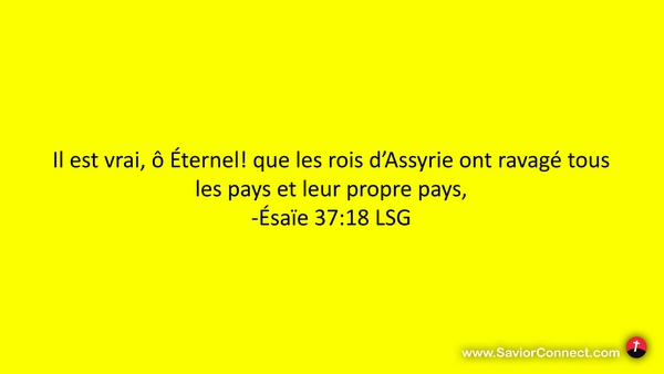 Il est vrai, ô Éternel! que les rois d'Assyrie ont ravagé tous les pays et leur propre pays, -Ésaïe 37:18 LSG