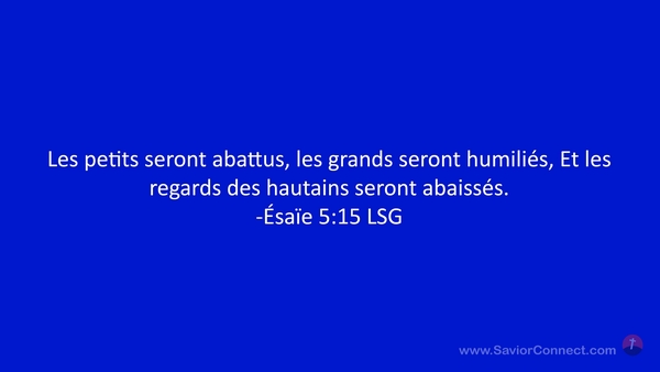 Les petits seront abattus, les grands seront humiliés, Et les regards des hautains seront abaissés. -Ésaïe 5:15 LSG