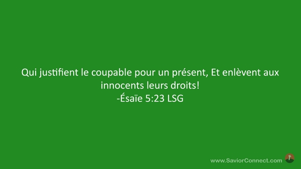 Qui justifient le coupable pour un présent, Et enlèvent aux innocents leurs droits! -Ésaïe 5:23 LSG